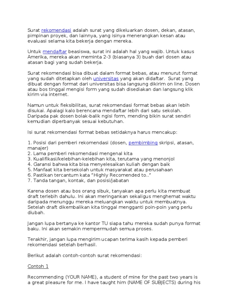 Contoh2 Surat Rekomendasi Beasiswa in English PDF Psikologi