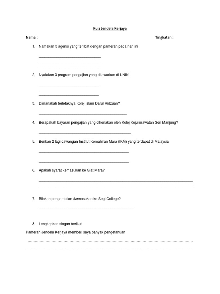 Kuiz Jendela Kerjaya PDF